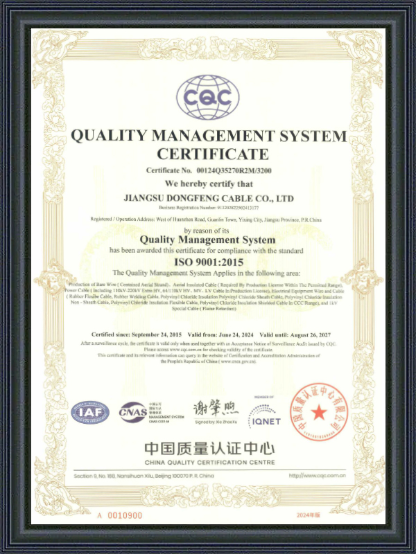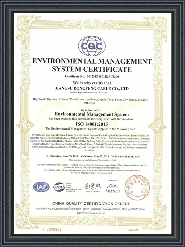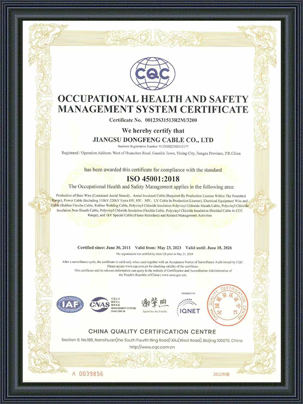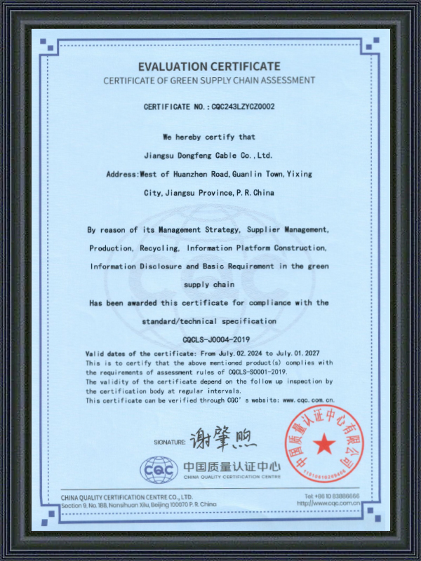 Jiangsu Dongfeng Cable Co., Ltd. ditubuhkan pada tahun 1988. Sebagai China Pengeluar Kabel Khas dan Kilang Kabel Khas Tahan Suhu Tinggi adalah sebuah perusahaan berteknologi tinggi kebangsaan yang mengintegrasikan R&D, pengeluaran dan jualan pelbagai jenis dawai dan kabel. Ia telah dinilai sebagai ‘Kilang Hijau Kebangsaan’, ‘Perusahaan Khusus, Khas, Inovatif dan Baharu Wilayah Jiangsu’, ‘Perusahaan Kualiti dan Integriti Wilayah Jiangsu’, ‘Perusahaan Kredit AAA’, dan ‘Perusahaan Kepuasan Pengguna Kebangsaan’. Kami menawarkan Kabel Khas Tahan Suhu Tinggi Tempahan.